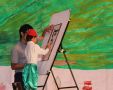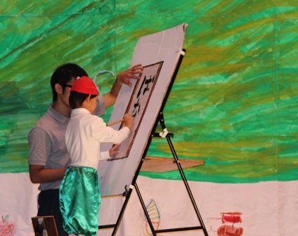 舞台上で筆で「ばなな」と書くシーンでは上手に