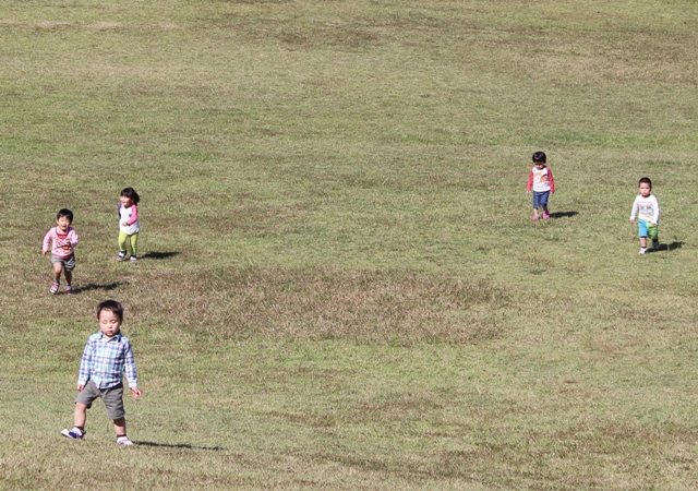斜面を走りまわったり、遊具やボールで遊んだりと思いっきり