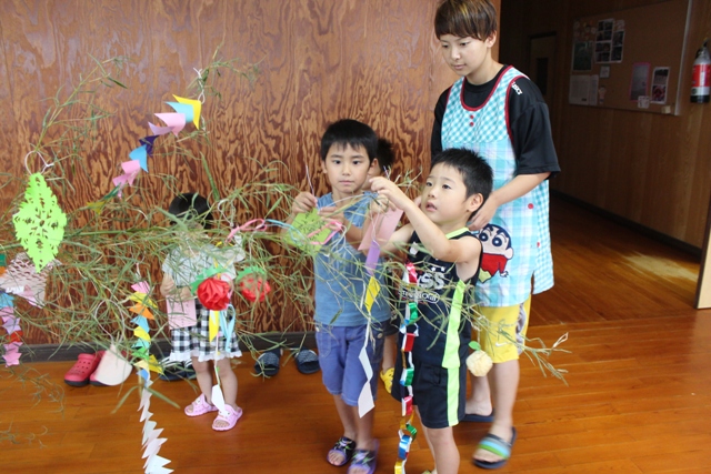 しかし、子どもたちは七夕飾りをみんなで一生懸命しました。