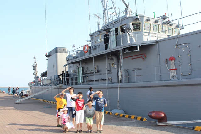 みんなで海に行った後、志布志港に寄港していた自衛隊の