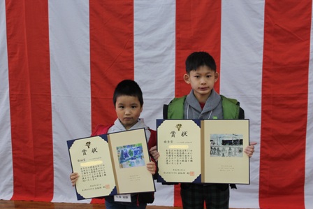 はくちゃんとみつえちゃんが立派に卒業証書を