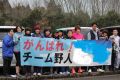 主任児童委員のみなさんが横断幕を持って応援