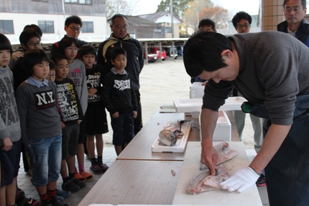 見事な包丁さばきに子どもたちも興味津々でした。