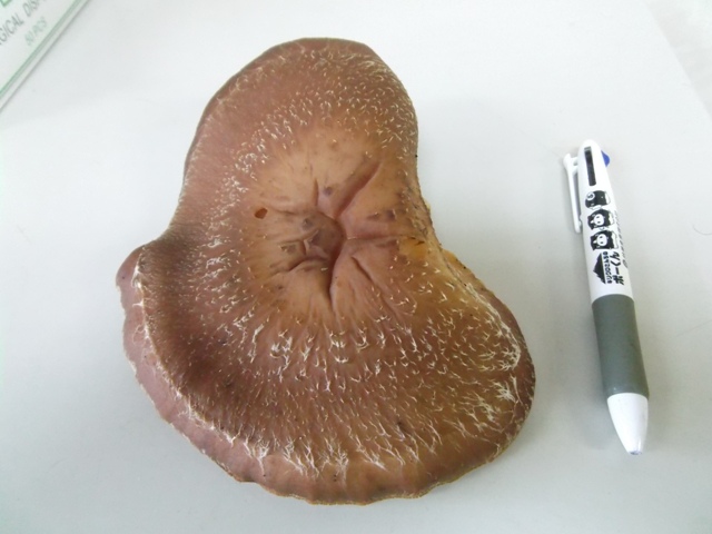 園庭の隅にあるシイタケの原木からこんなに大きな