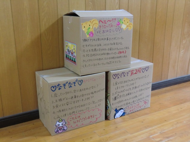 箱にもクイズや皆さんの思いが書かれていて毎月楽しみに