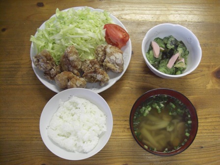 見た目に美味しそうな唐揚げ定食の出来上がり☆彡