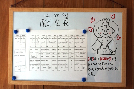 子どもたちが楽しみにしている毎日の献立表ですが、