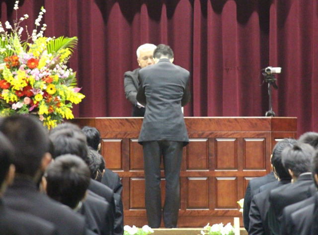 前生徒会長として答辞を読み上げ、堂々とした立ち振る舞いで